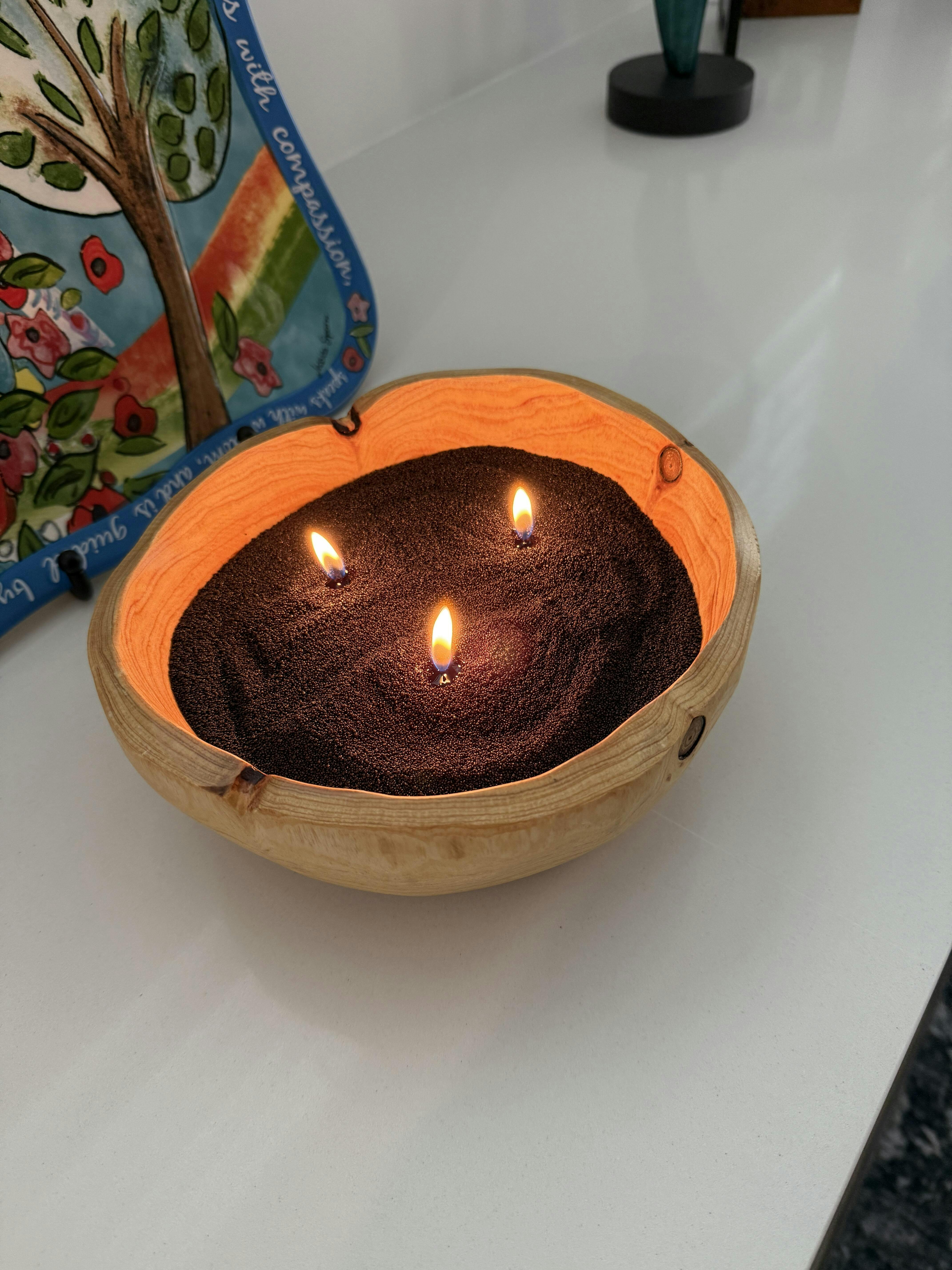 Transform your living space with our elegant Wooden Candle Vessel, the perfect natural vessel to hold Foton Pearled Candles.