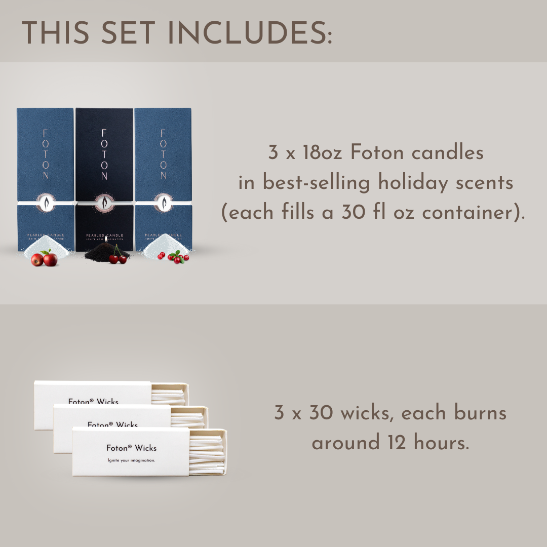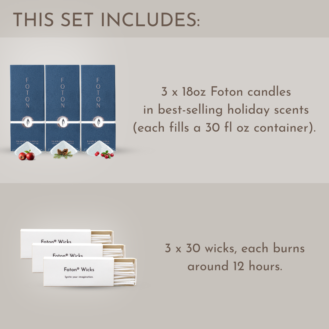 Cozy up to the season with our Holiday Candle Trio - a curated bundle of three holiday-inspired scents. Each candle captures the essence of fall and winter, from crisp leaves and warm spices to sweet baked treats. Perfect for gifting or filling your home with the comforting glow.