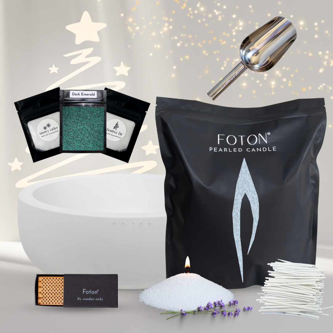 Foton Candle pearls are plant-based, vegan, and burn cleanly with minimal smoke or soot. Our pearls are derived from certified sustainably sourced and highly purified plant-based wax. They do not contain paraffin, soy or any known allergens. We use both natural and synthetic fragrances to scent our scented versions. Our scents are free of phthalates and parabens.