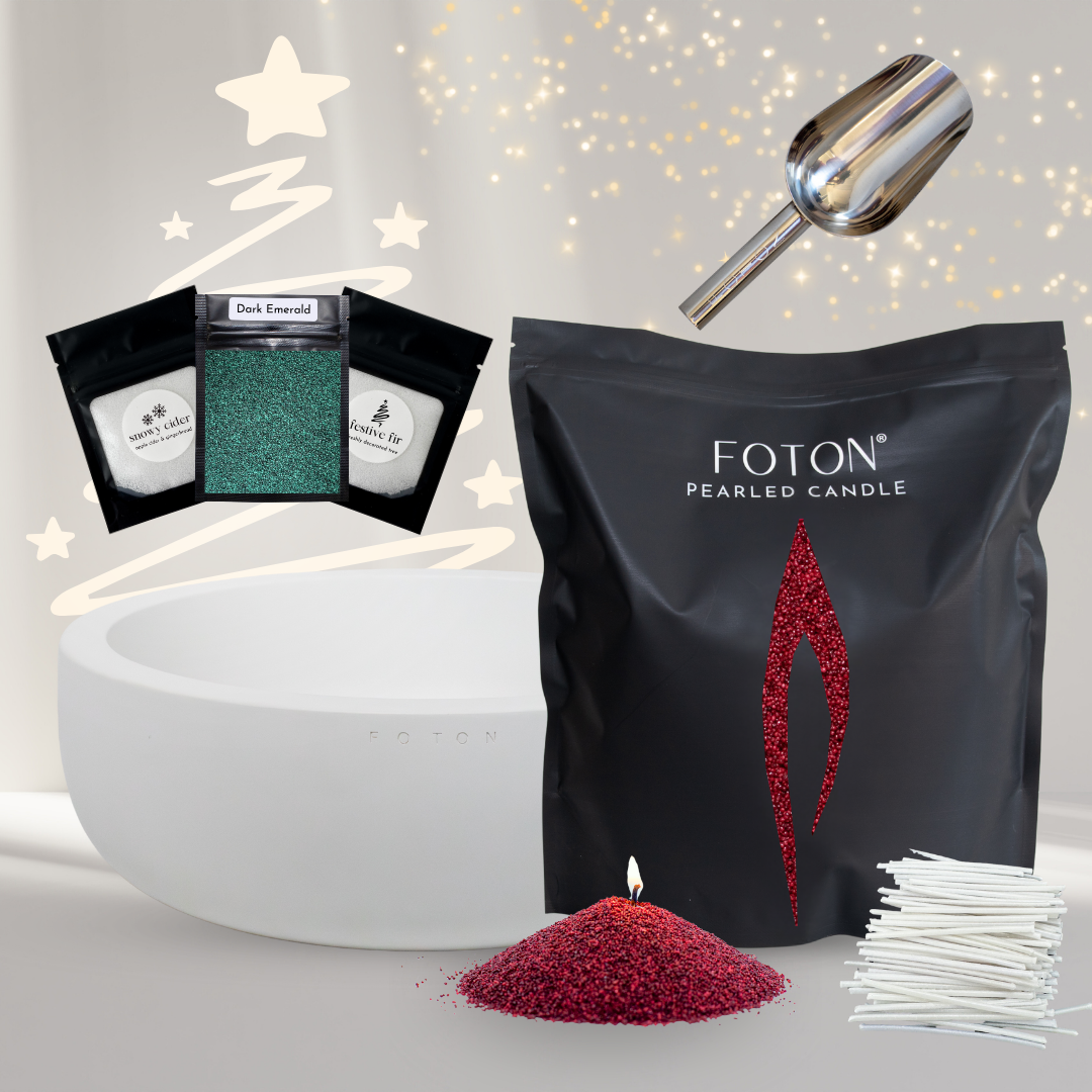 Foton Candle pearls are plant-based, vegan, and burn cleanly with minimal smoke or soot. Our pearls are derived from certified sustainably sourced and highly purified plant-based wax. They do not contain paraffin, soy or any known allergens. We use both natural and synthetic fragrances to scent our scented versions. Our scents are free of phthalates and parabens.