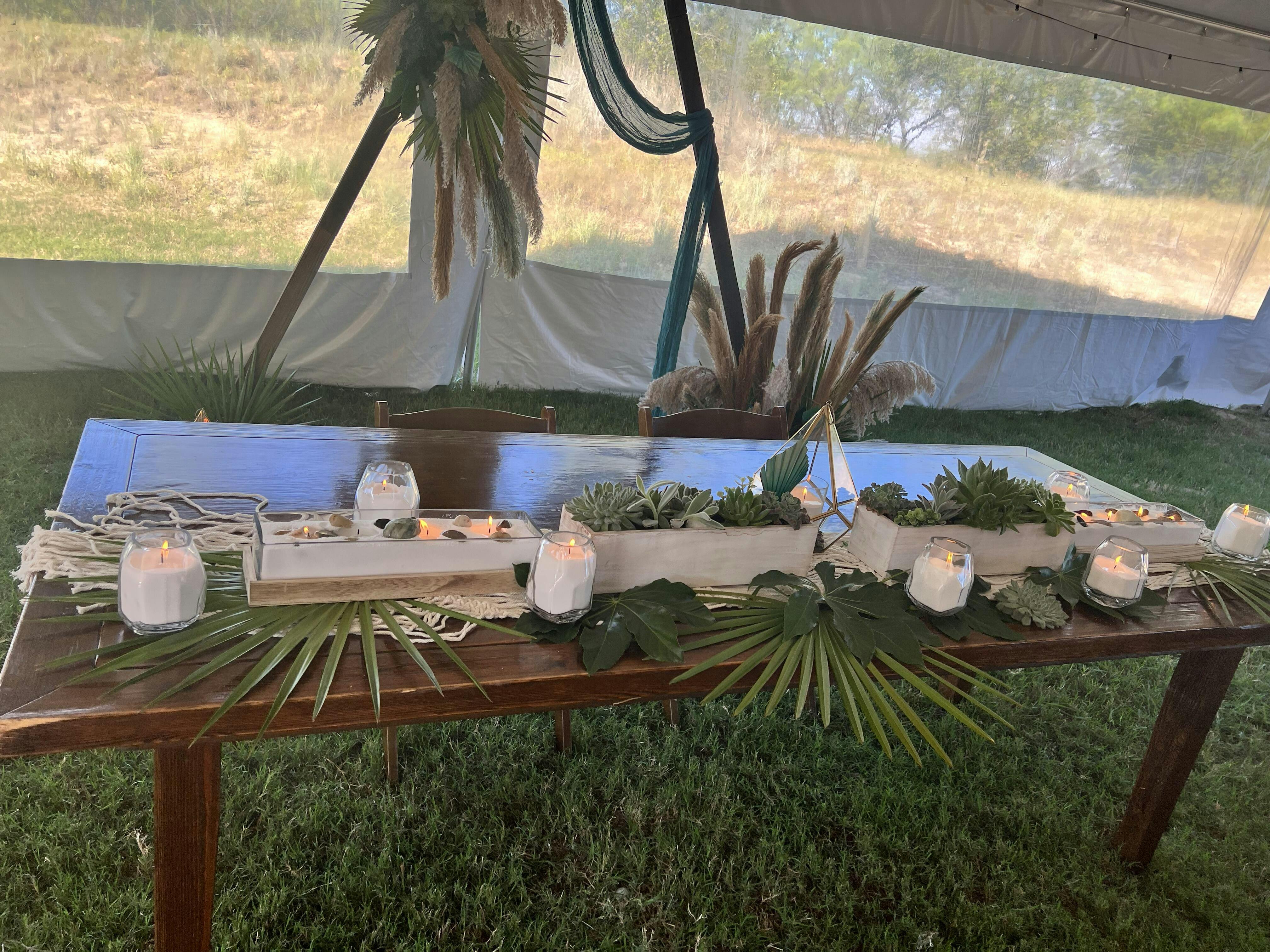 We have washed glass & trimmed pillar candles for the last time! Foton candle pearls are the only way to go...fill your vases, add a wick and that's it. With several weekends of back to back weddings & events, we are able to fill once & use, then refresh and use again...no scraping wax, no need to order another case of pillars...such a time saver and our clients love them!